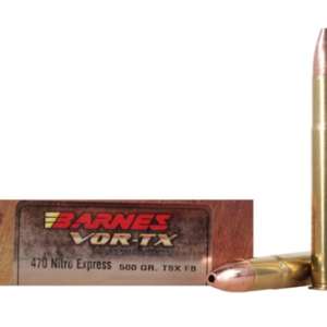 Barnes VOR-TX Safari Ammunition 470 Nitro Express 500 Grain Banded Solid Flat Point 60 rounds