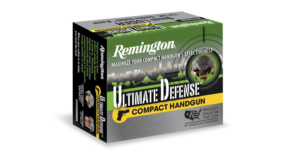Get the right ammo for your defense needs with Remington Compact Handgun Defense Ammunition. This ammo is designed with the traditional concealed-carry permit holder in mind. The company provides big gun terminal performance for all revolvers and short barreled pistols. The rounds are specifically engineered to give every shooter the optimal expansion and penetration even through heavy clothing. Heavy clothing and lower velocities are perfectly acceptable for maximum stopping power. Rest assured that the designs inhibit corrosion and reduce the muzzle flash associated with every shot you take.